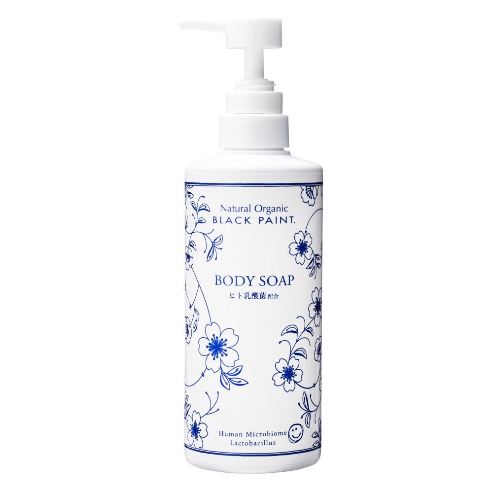 足の裏まで全身しっかりケアができるスーパー乳酸菌「ロイテリ菌」を含む3種の乳酸菌と、必須脂肪酸の含有量に重点をおいて、オーガニック認証オイルを贅沢に配合したブラックペイントのボディソープ。