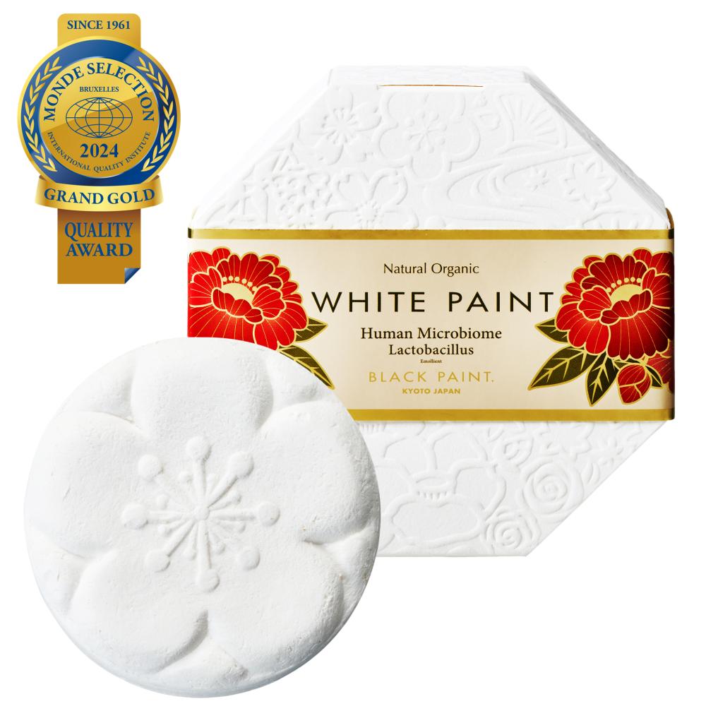 ブラックペイント同様に、ホワイトペイントは3種の乳酸菌※はもちろん、オーガニック成分を27種類ブレンド、さらに香りにはオーガニックのエッセンシャルオイルを使用している、こだわりぬいたペイント石鹸です。 モンドセレクションにおいて、10年連続最高金賞*を受賞している、世界に認められた石鹸です。成分の素材を壊さず、そのまま栄養を届けられるように、ペイント石鹸は、コールドプロセス製法に徹底してこだわりました。シルクを配合することで、さらに美肌へアプローチします。